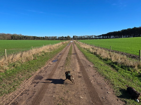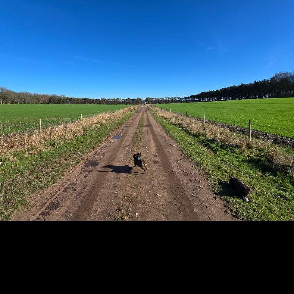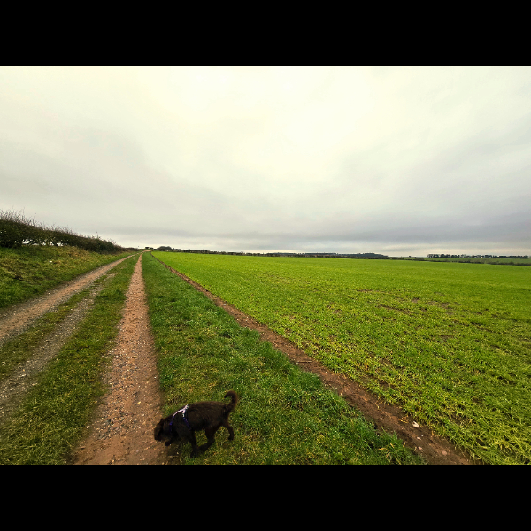 The sun was shining bright on valentines which meant dusting off the walking boots in leau of wellies and reaching those milestones. Today's route of choice was a recently discovered trail leading from the back of Clumber Park to Thoresby Hall. From where we parked the car at the other side of Clumber to Thoresby was around 3.5 miles, so doing a round trip would be a good leg stretcher. On the trail we barely saw any other person and instead were kept company by a family of buzzards and some tranquil pigs wandering about their outdoor enclosures in a pig farm the trail ran through. Upon arriving at Thoresby a quick cafe stop was needed and we shared a well earned sausage roll with the now hungry doggos. The walk back was easy, reversing back down the same trail. Overall a very calming and sunny walk which I would definitely repeat.