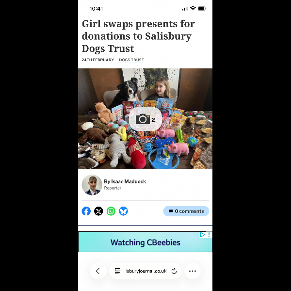 Hi I’m Isla, I’m 8 years old and will be turning 9 on the 18th March. I asked my mum and dad instead of presents I wish to go to the dog trust and give them lots of toys and things they need.