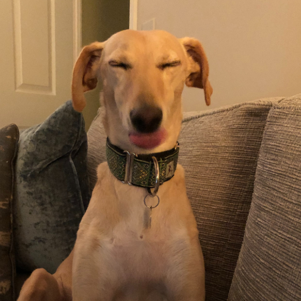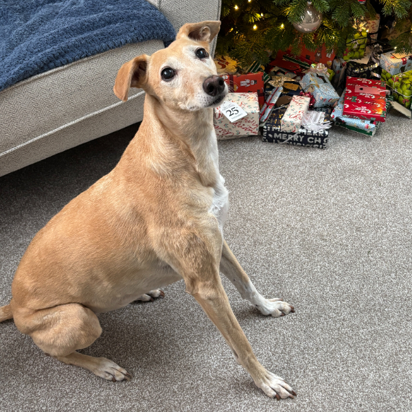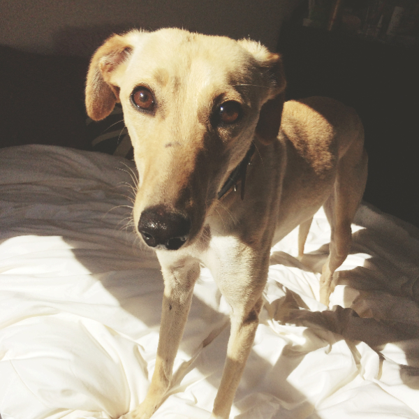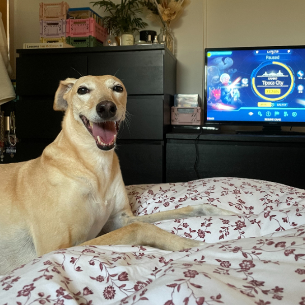 My family adopted Honey (a honey-coloured lurcher) from Dogs Trust Darlington back in 2015 when I was a fresh-faced 18 year old. I am now 28 and Honey could be anywhere from 11 upwards (we have no idea!). Dogs Trust brought her over from Belfast where she was roaming the streets and she never even made it to their website as we had enquired already about lurchers to keep our whippet company. She has lived a life of luxury ever since, often being made her own personal omelette for breakfast and sleeping on the human bed.
